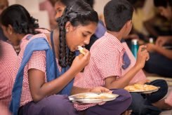 Along with education we also provide free multi-grain (Sai Protein) porridge cooked with milk and jaggery to all our children for breakfast. Nutritious and sumptuous lunch is served to all our children, staff and helpers every day free of cost. The afternoon lunch can be sponsored by those who wish to celebrate special days in their family like birthdays, anniversaries, ceremonies etc.